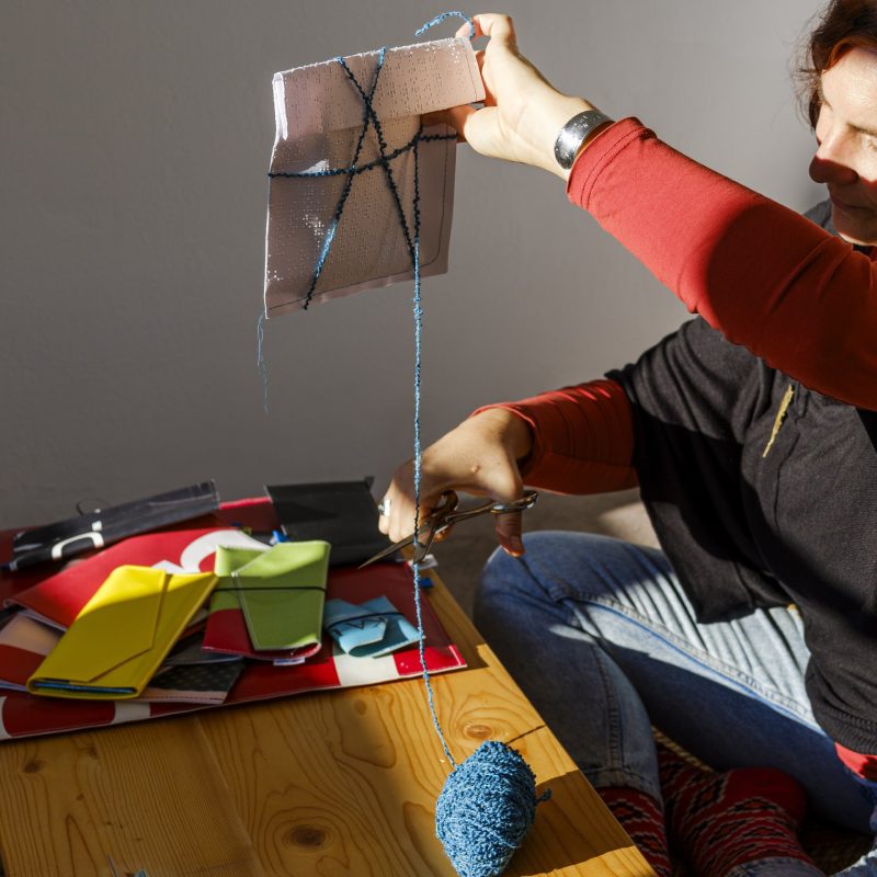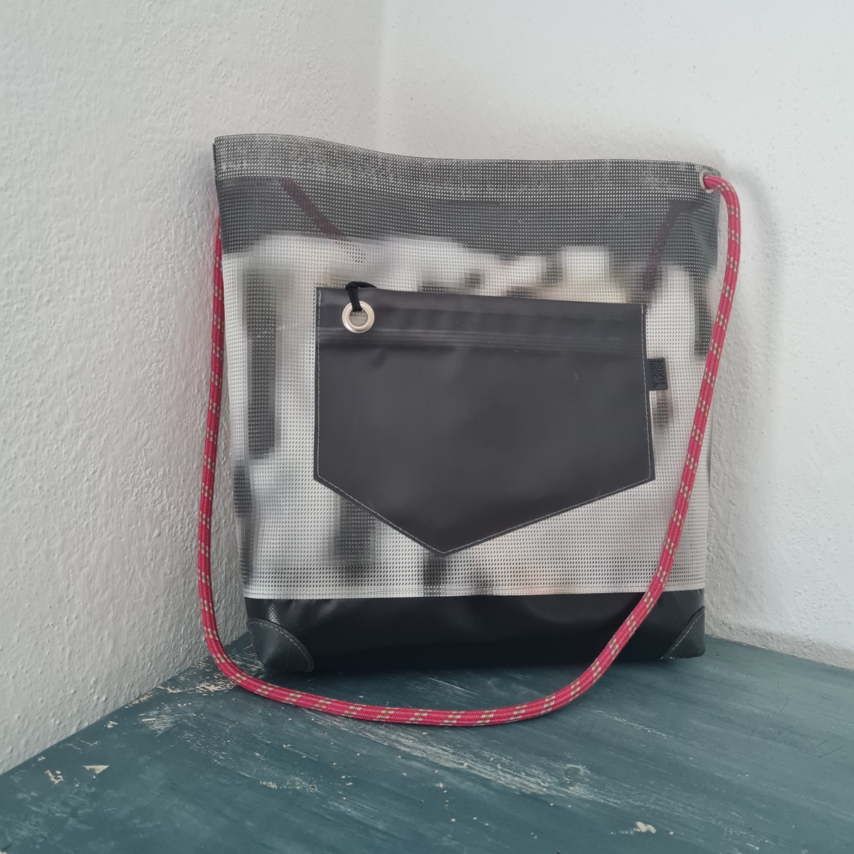 Mrežasta cerada s potiskom piranskega zvonika, katerega je varovala med prenovo;v obliki elegantnih unikatnih izdelkov. Kolekcijo zaenkrat sestavljajo:Štrik torba,Pisemska mapa (A4, A3),Pisemski etui (S,