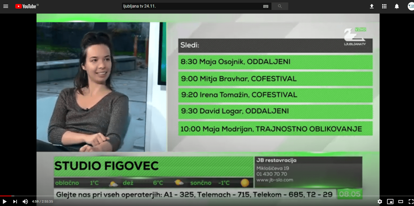 Najin pogovor teče od 2:02:00 pa do konca oddaje Ljubljana TV.